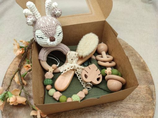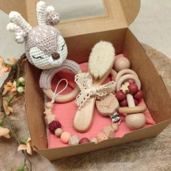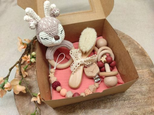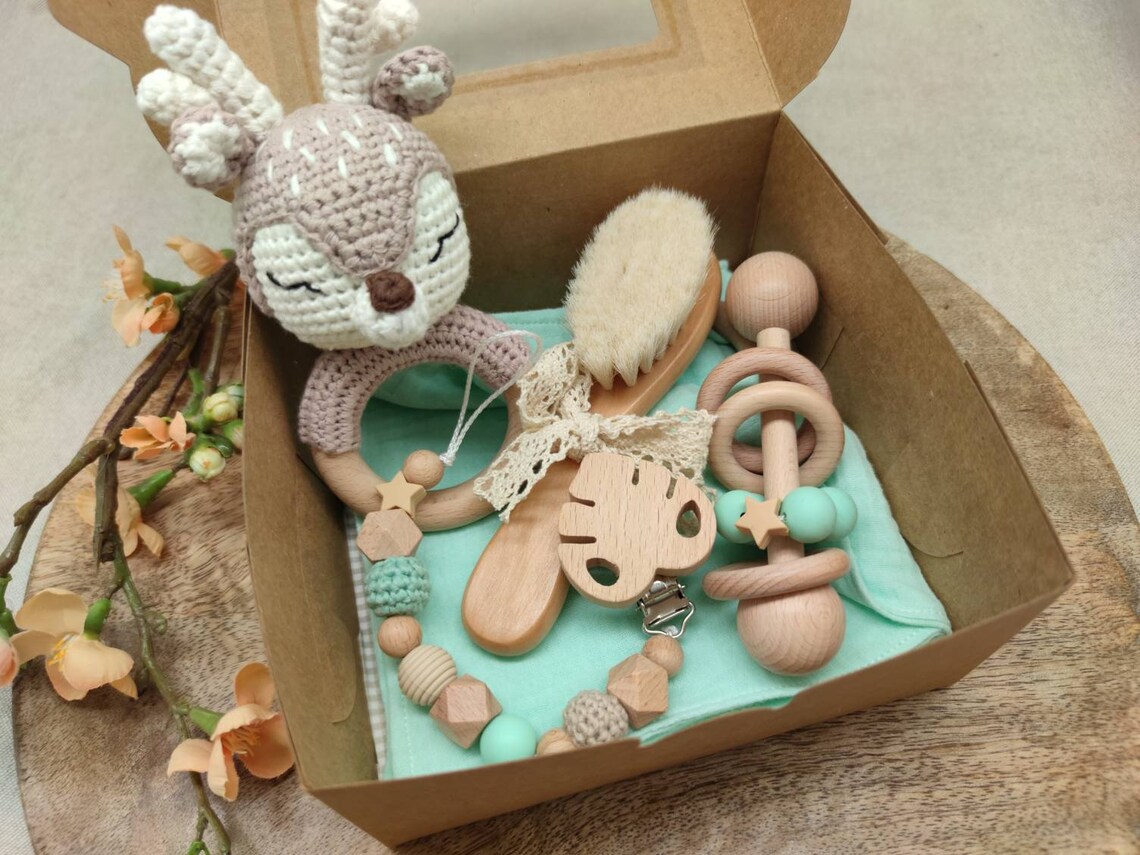 Make your gift something very special and have the rattle engraved with the baby’s name or personalize the pacifier chain with letter beads.IMPORTANT